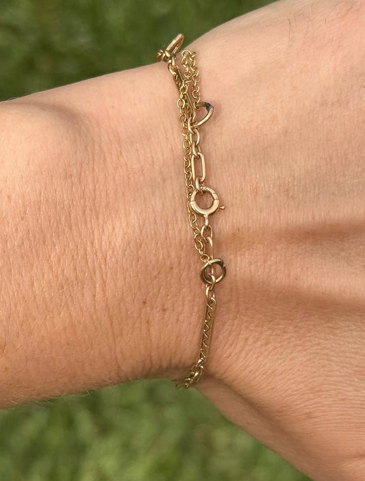14k Antique yellow gold Bar link watch chain with swivel dog clip and removable split ring - 14.3โ
