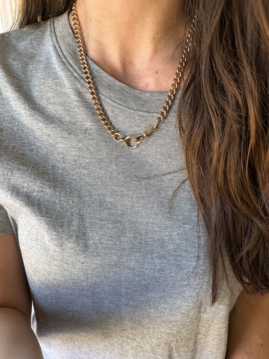 Curb chain - Antique 9ct Uniform watch chain with extra large bolt clasp and swivel dog clip - 19”