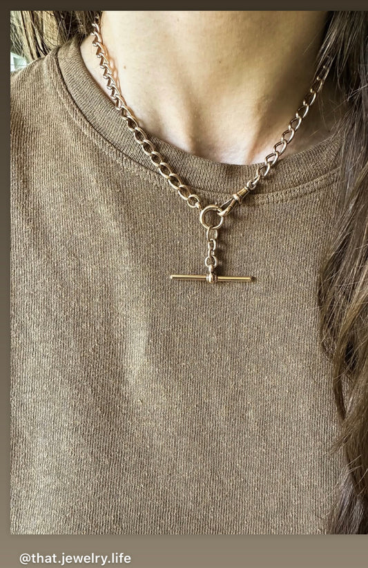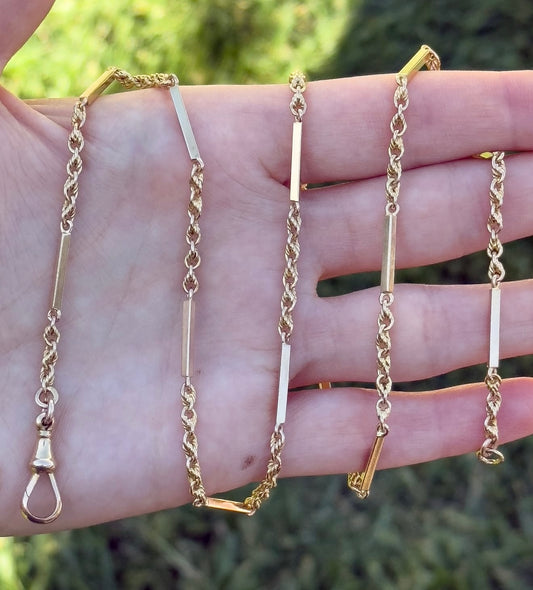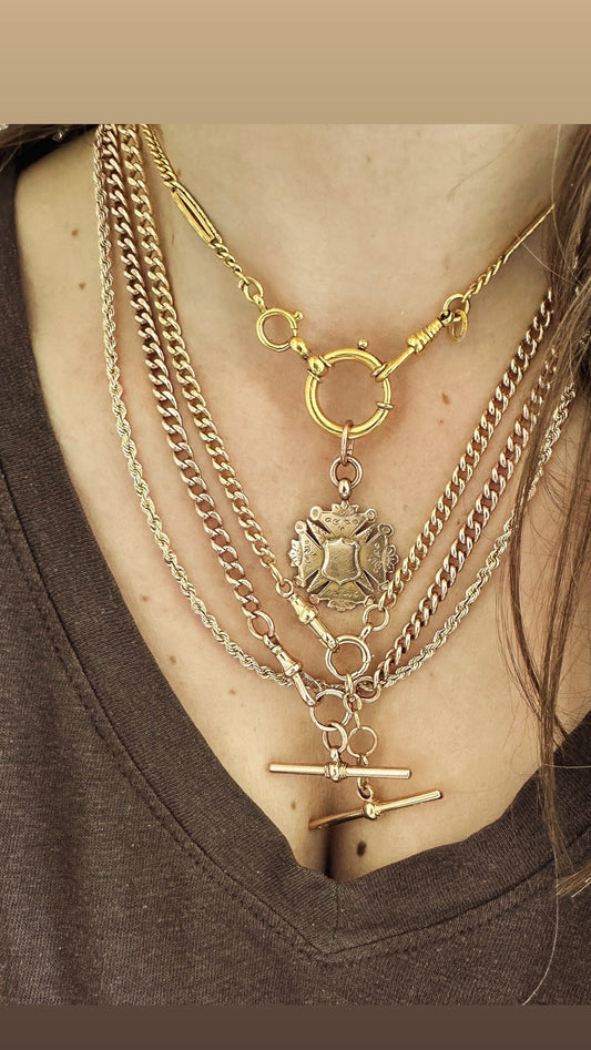 Rolled-gold Antique watch chain with large detachable bolt clasp - 14.5”