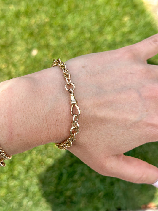 Love-link watch chain Antique 9ct bracelet with swivel dog clip - 7.25”